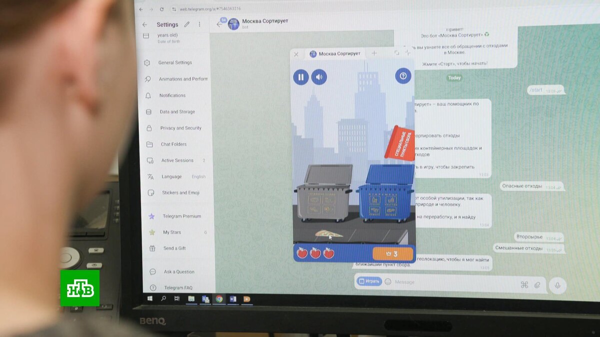 [ Смотреть видео на сайте НТВ ] Телеграм-бот для раздельного сбора отходов создали в Москве. Для жителей столицы запустили телеграм-бот для помощи в сортировке мусора. Сервис «Москва сортирует» может прислать адреса ближайших пунктов приема специальных отходов и контейнерных площадок. Для этого нужно ввести слова «Вторсырье», «Смешанные отходы» или «Опасные отходы» и отправить свою геолокацию. А нажав на кнопку «Играть», можно изучить правила сортировки. Мария Захарова, руководитель пресс-службы АО «Экотехпром»: «В нашем чат-боте большая база советов по правилам раздельного накопления отходов. Там есть факты о том, как перерабатываются ресурсы, как получаются интересные вещи из отходов». Применить полученные знания можно в мини-игре или квизе. Программа раздельного накопления отходов реализуется в столице уже пять лет. [ Смотреть видео на сайте НТВ ]