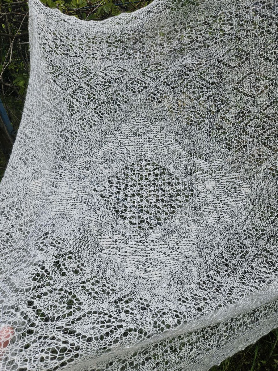 Эксклюзив палантин 200×100см 2 метра в длину, ширина 1м Пряжа в оренбургской технике чисто-пуховая нить + шелк Несмотря на воздушность, очень крепкий, не ползёт, держит форму Статусная вещь Можно на плечи, можно на диван, можно как акцент в интерьере Цвет сливочный