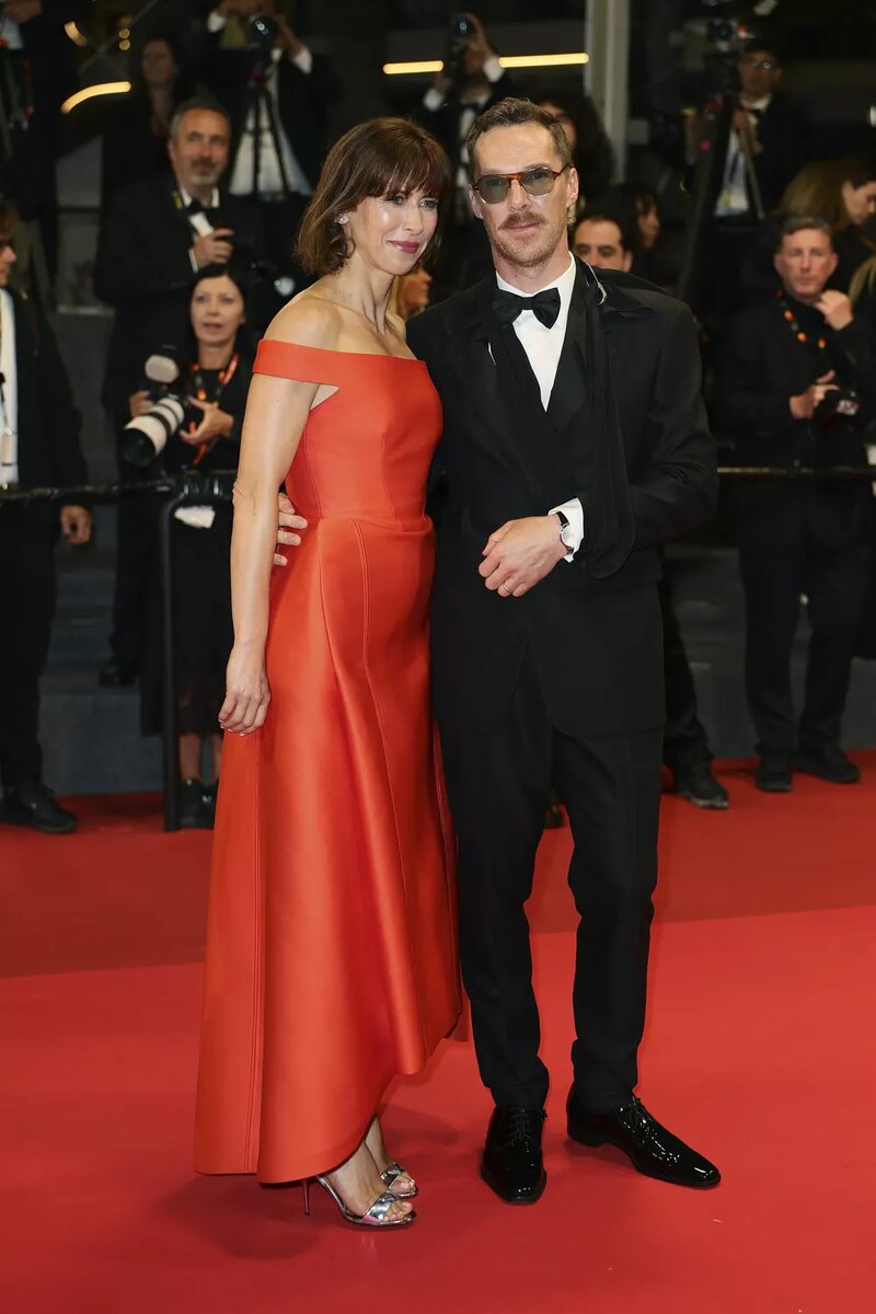 Обе пары посетили премьеру новой картины Уэса Андерсона "Финикийская схема" в Каннах. И если Камбербэтч стал частью актерского состава ленты, то Нортон пришел на премьеру, чтобы поддержать давнего друга-режиссера, который нередко зовет его в свои фильмы. Для обоих показ картины в рамках 78-го Каннского кинофестиваля стал веским поводом выйти в свет со своими вторыми половинками. На премьере, прошедшей вчера, 18 мая, Бенедикт появился с женой Софи Хантер, а Эдвард — с супругой Шоной Робертсон. 48-летний Камбербэтч, сыгравший в фильме “Финикийская схема” персонажа дядю Нубара, вышел на дорожку в классическом черном костюме с бабочкой и смокингом, и главным его аксессуаром стал черный бандаж, поддерживающий поврежденную левую руку. К слову, актер так и не раскрыл, как именно и когда получил эту травму. Его супруга-актриса появилась в Каннах в кораллового оттенка структурированном платье из атласа и минималистичных серебристых босоножках. 55-летний приятель режиссера Уэса Андерсона Эдвард
