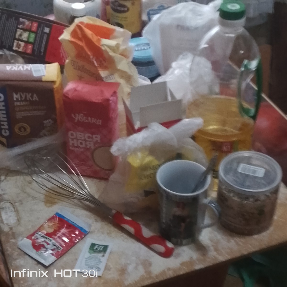 Приветствую своих подписчиков и читателей! Всех благ, дорогие друзья! 💕💕💕 Не надо торопиться, когда Иваныч в отпуске. Встали в одиннадцать , позавтракали и я начинаю печь хлеб. Ой, давно не пекла! Ну что, все, что есть, выложила на стол. 🤣 У меня в наличии - мука пшеничная, мука ржаная цельнозерновая, мука овсяная, мука зеленой гречки, псиллиум, семечки разные, масло подсолнечное.Соль и лимонную кислоту использую для хлеба бездрожжевого. Бокал для того, чтобы знать сколько воды налила. Начинаю: бокал теплой воды,( позже ещё бокальчик добавила),чайная ложка соды( без горки), лимонки тоже чайная ложка, перемешиваю, соли и сахарозаменитель добавляю. Потом сыплю постепенно муки разной🤩, овсяной,ржаной, муки зеленой гречки, грамульку пшеничной, добавила псиллиум, подсолнечного масла. Вымешиваю тесто. Не тугое. Разделила на две части, разложила по формам, посыпала семечками и отправила в духовку. Вниз ставлю сковородку с водой, чтоб не подгорала выпечка. Скоро буду вынимать из