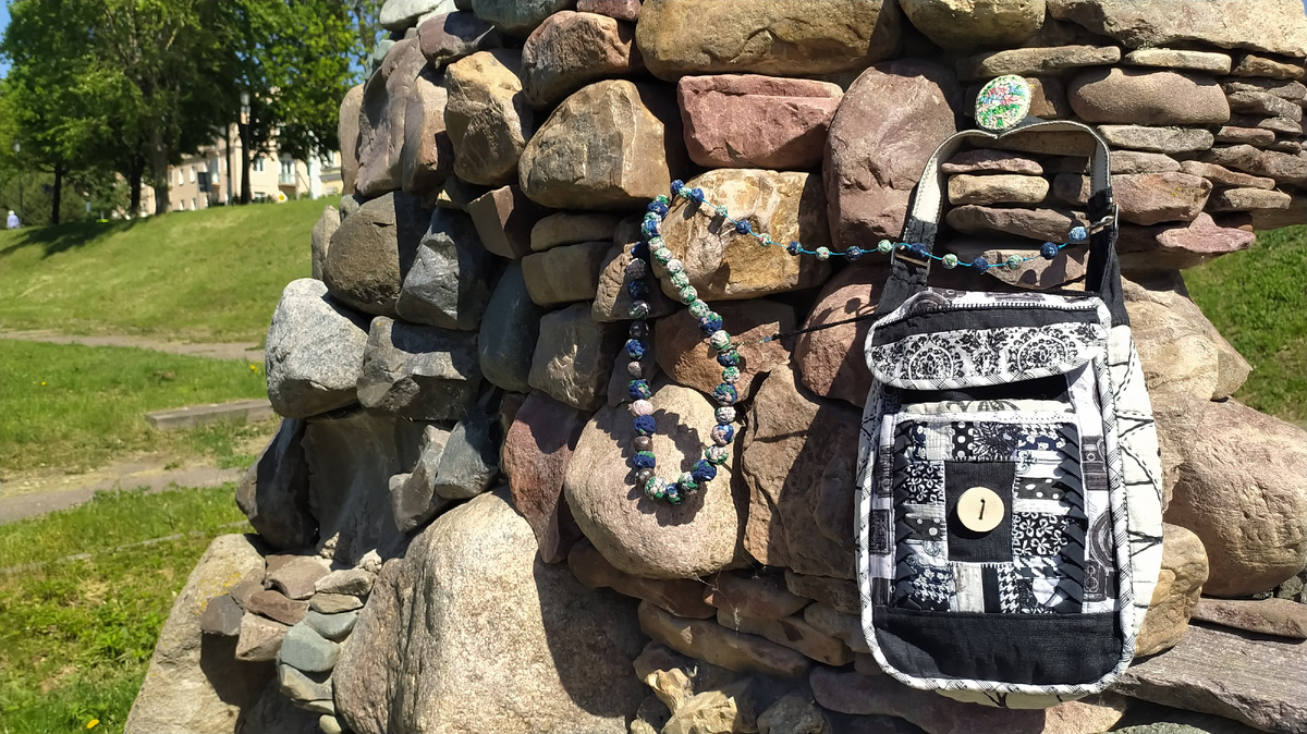 Сумка со множеством кармашков для музейного смотрителя – такова была идея. И я воплотила еë, помните? Это был совместный пошив, ссылка на все публикации проекта в финале статьи, непременно загляните, там очень интересно. Но сумка вышла такой классной, эффектной, интересной, что я не смогла заточить еë в стенах одного музея и мы принялись вместе открывать жизненные пути. Добро пожаловать в гости. Если заглянули в «Кармашек» впервые - будьте готовы к уютному, доброму общению. Рукоделие, фотопутешествия, фотопоэзия и поиск счастья в ежедневности - это нас объединяет, дарит силы и вдохновение. Канал дневниковый, всë субъективно и от первого лица - пережитое и увиденное лично. Музей природы был тогда местом моей работы и первое появление сумки прошло на фоне костромских болот, посмотрите видео здесь Старт был похож на веер из чëрно-белых лоскутков. Они превратились в водоворот, затянули в игру... Поначалу был придуман и создан ремешок, вязаный крючком. Потом я переделала эту деталь