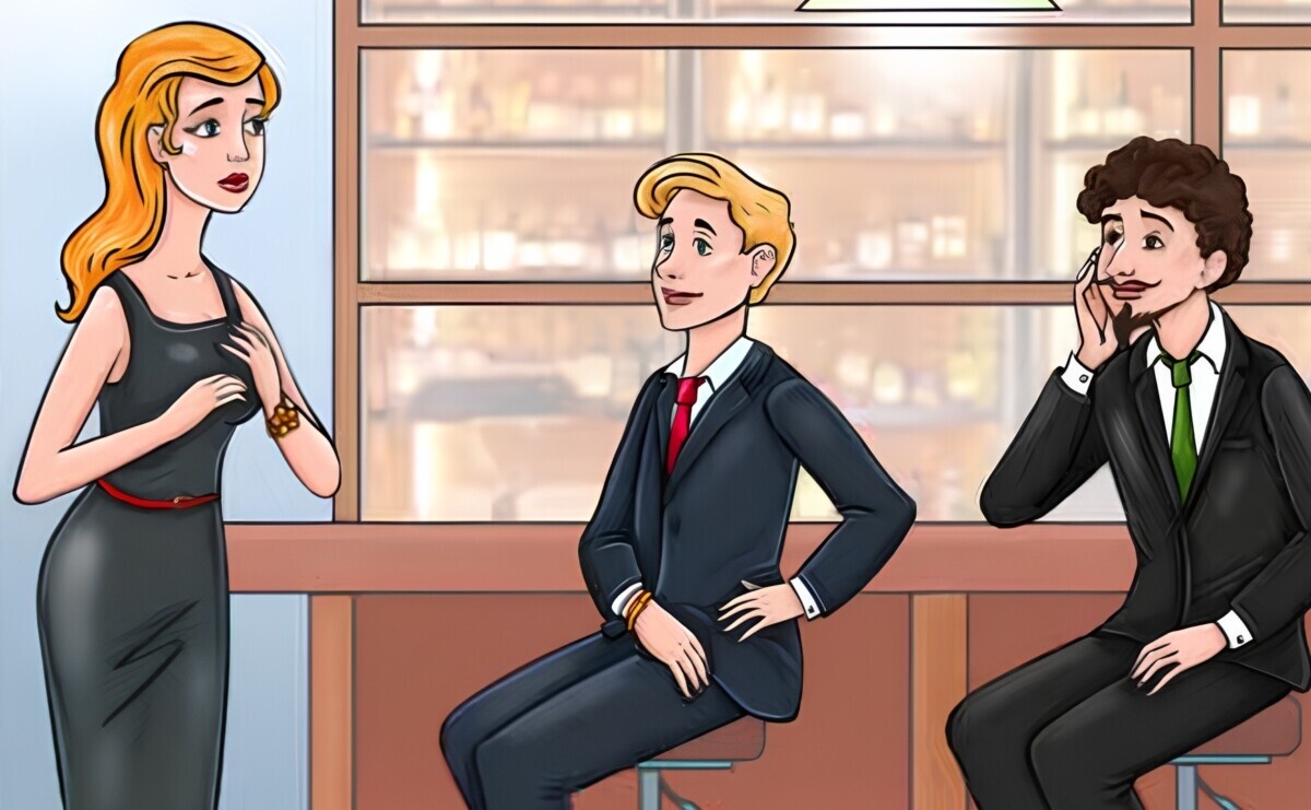 Чтобы решить эту визуальную загадку, вам нужно найти маленькую деталь. На картинке изображены трое мужчин, и один из них — парень, к которому женщина пришла на свидание. Готовы ли вы решить ее?