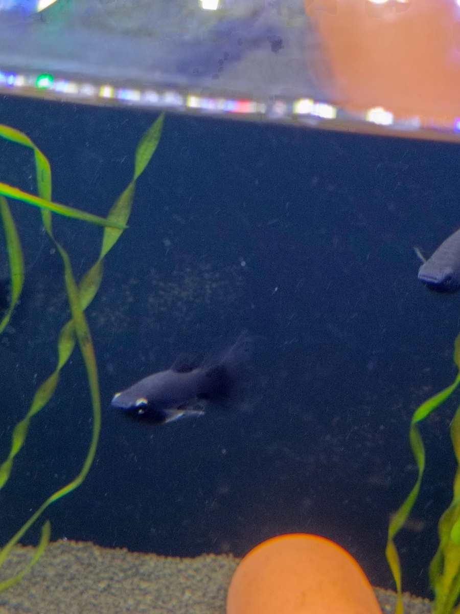 Аквариум 100л, запустили месяц назад. Вот купили моллинезий 6шт. 5 выглядят нормально, а вот у одной слишком выразительны глаза (выпучены или нет?)