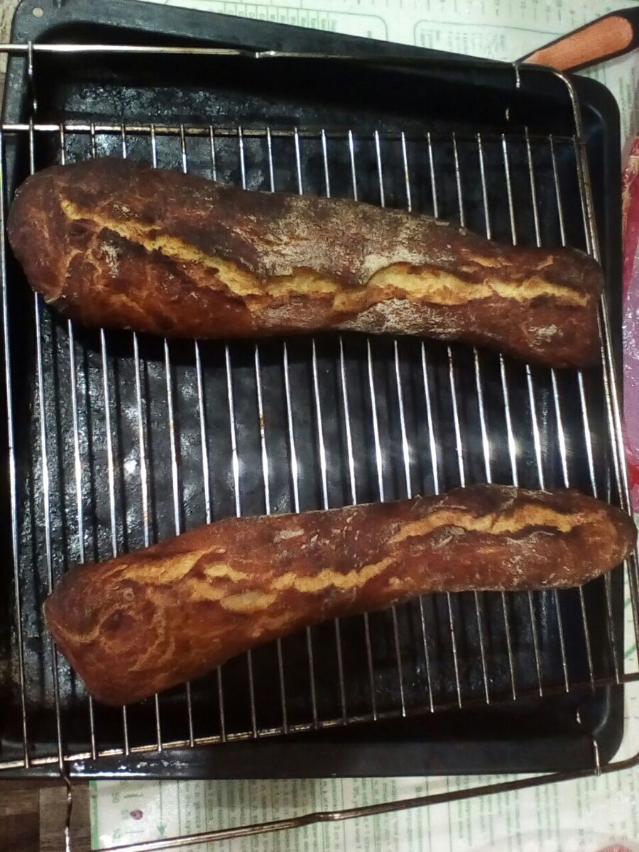 Пекарский процент: Мука 100, Соль 1.75, Дрожжи 0.25, Вода 75. Итого: 177.