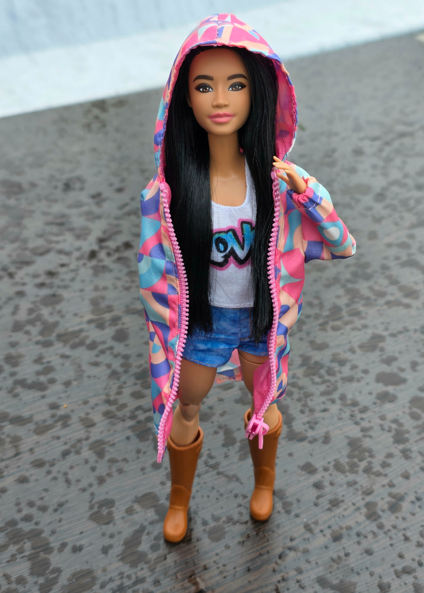 Я наконец добралась до большой уборки на даче, посвятила этому выходные. Конечно же отправилась туда не одна, а в компании с куклой. Мне хотелось, чтобы она непременно надела сапоги и ветровку, поэтому исходила из соображений - кто сможет это органично носить, тот со мной и пойдет. Лучше всех это получилось у Ани (Barbie fashionistas 199 на миниатюрном теле) Но в субботу день выдался на редкость холодный, поэтому я забазировалась внутри с обогревателем, а Аня так и просидела в сумке. Оторвались в воскресенье) Началось всё с дождика (раз уж у нас есть капюшон!), собственно на фото - это и есть весь дождик) Нормальную девушку в первую очередь привлекает красивое - цветочки. У нас пока только нарциссы. Заглянули в смородиновые кусты. Там тоже цветение, хоть и весьма скромное. Пока Аня позировала, я сидела в засаде и вела фотоохоту на шмелей (или пчёл, я не разбираюсь). На смородине они не очень хотели фотографироваться, а вот на рядом растущей жимолости были более сговорчивы. Потом А