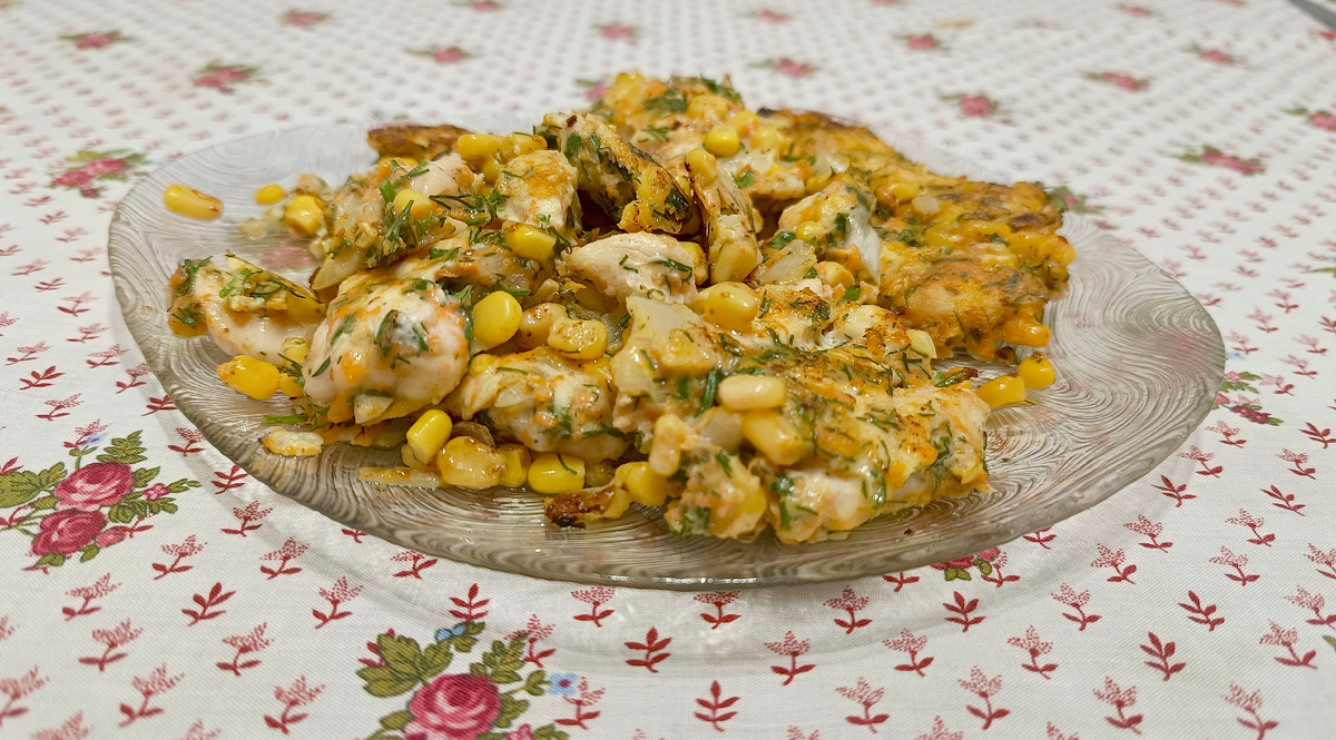 Сегодня Макарушка одобряет " Рубленные котлеты " для приготовления понадобится: ⓵ филе куриное 400 грамм ⓶ кукуруза 1 банка ⓷ 1 большая морковь ⓸ специи ⓹ 1 средняя луковица ⓺ зелёный лук ( стручок ) и укроп по 50 грамм ⓻ яйцо 2 шт. Способ приготовления: нарезаем филе на кубики 1Х1 см и скидываем в глубокую миску. Затем открываем кукурузу, сливаем воду и высыпаем всю банку в миску с курицей. Морковь чистим от кожуры и натираем на крупной тёрке. Тёртую морковь высыпаем в миску. Мелко нарезаем лук и остальную зелень, скидываем в миску. Солим и перчим. Разбиваем 2 яйца и всё перемешиваем. На разогретую сковороду выкладываем по столовой ложке нашей смеси и прижимаем. Жарим по 3-4 минуты под крышкой. Вот такие котлеты получились у меня: Приятного аппетита!