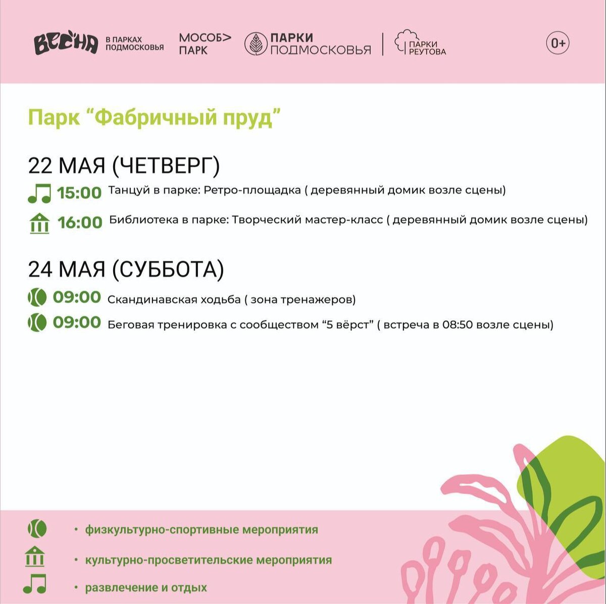 Парки Реутова поделились планом еженедельных занятий 🔥