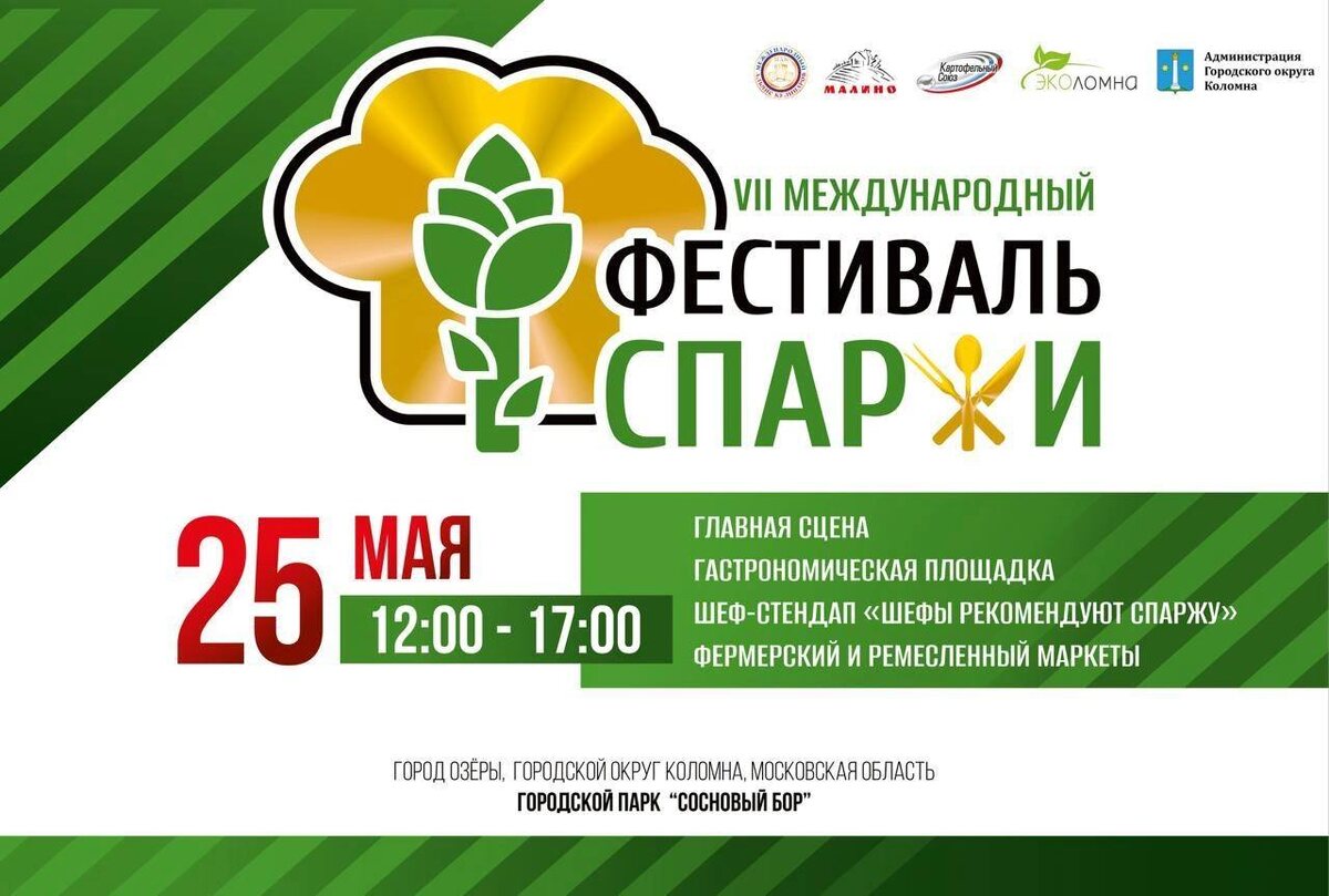 25 мая с 12.00 до 17.00 в парке «Сосновый бор» в городе Озеры традиционно открываем сезон спаржи VII Международным фестивалем спаржи🌱 Гастрономическая площадка фестиваля наполнится поварами - учениками, профессионалами и экспертами. Шеф-стендап «Шефы рекомендуют спаржу» объединят выступления и мастер-классы 20 шеф-поваров, рестораны приготовят блюда из спаржи, и, конечно, по традиции приготовят огромную порцию супа из спаржи! Площадка байк-клуба Free Chapter 1st Moscow Russia, Фермерский и ремесленный маркеты, детская зона и площадка проекта «Энергия побед» и концертная программа станут хорошим дополнением. #ГородскойОкругКоломна #Коломна #КоломнаОзёры #Подмосковье #НашеПодмосковье #Московскаяобласть