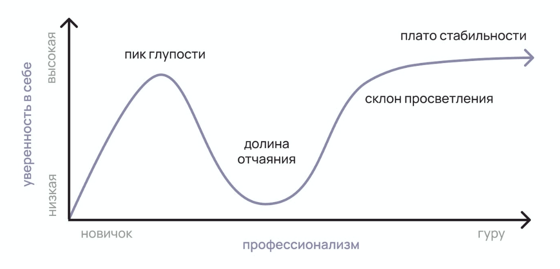 2. Эффект Даннинга-Крюгера — гипотетический эффект, когда люди с низкой компетентностью в какой-либо теме склонны считать себя знатоками этой темы, при этом делая ошибочные выводы и принимая неудачные решения, но не осознавая своих ошибок из-за нехватки знаний и умений.