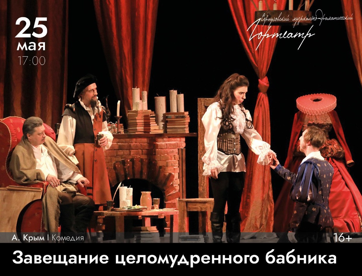 ✨ Интригующая комедия в ближайшее воскресенье А. КРЫМ ЗАВЕЩАНИЕ ЦЕЛОМУДРЕННОГО БАБНИКА 16+ Дон Жуан — фигура легендарная и скандальная, на счету у которого 617 женщин, каждую из которых он страстно любил. Лёжа на смертном одре, Дон Жуан решается на исповедь молодому монаху. Его признания фантастически неожиданны. Продолжительность 2 ч. 15 мин. (с антрактом) 🚫 Возраст: 16+ 📆 25.05.2025 🕒 17:00 🏢 Серпуховской музыкально-драматический театр 📍 г. Серпухов, ул. Чехова, д. 58/27 💰 Цена от: 500 до 1000 ₽ 🎫 Купить билет: https://new.biletof.com/choose/?ra=16040&elem=0&var=4&frame=1 #Серпуховтеатр #СМДТ #спектакльСерпухов ✅ Мероприятия Серпухов https://dzen.ru/id/66f01c6eb4c6fe60c9ca1608 http://vk.com/serpukhov_events http://dzen.ru/serpukhov_events