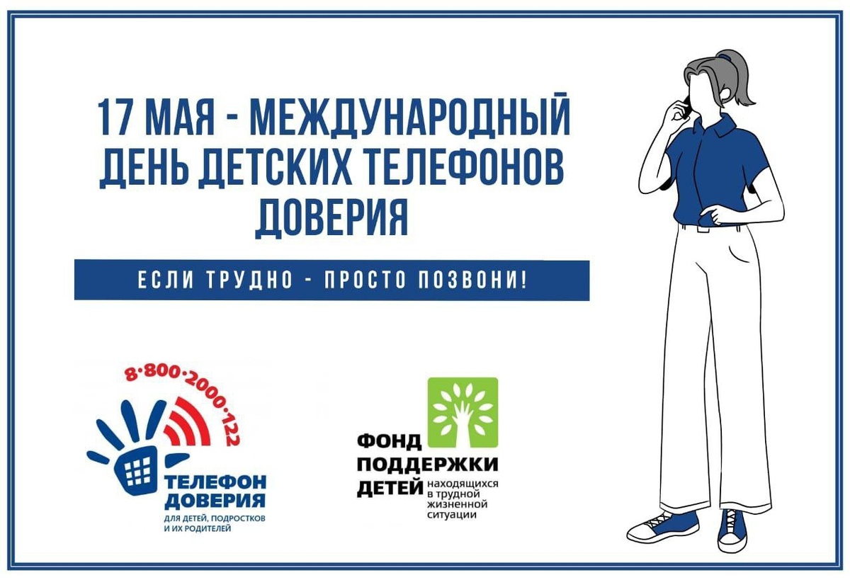 17 мая в России отмечается Международный день Детского телефона доверия, призванный привлечь внимание к необходимости усиления мер по защите детей в трудной жизненной ситуации и помощи им. Главная цель праздника – распространение информации о работе данной службы, направленной на оказание психологической поддержки, позволяющей детям в безопасной и комфортной атмосфере открыто обсуждать свои проблемы. Инициатива отмечать этот день принадлежит Международному объединению детских телефонов доверия, включающему службы более 150 стран мира. Единый общероссийский номер Детского телефона доверия – 8-800-200-01-22 был введен Фондом поддержки детей, находящихся в трудной жизненной ситуации, совместно с субъектами Российской Федерации в сентябре 2010 года. В настоящее время к нему подключено более 220 организаций в 85 субъектах Российской Федерации, деятельность которых позволяет осуществлять экстренную психологическую помощь детям, подросткам, их родителям и близким. Специалисты «Телефона довери