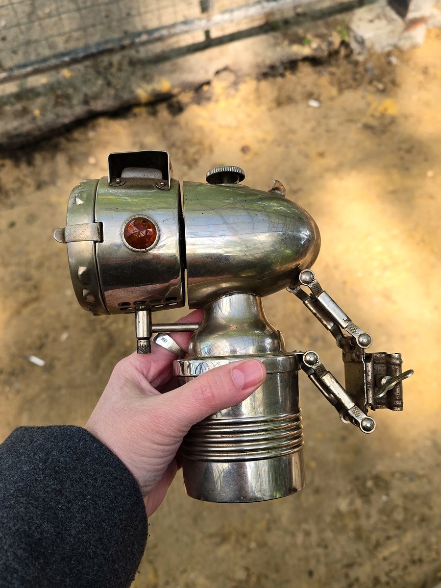 Им оказался велосипедный карбидный фонарь. Продавец был любезен, и не просто разрешил сфотографировать этот аппарат, но и подробно рассказал про его принцип работы.