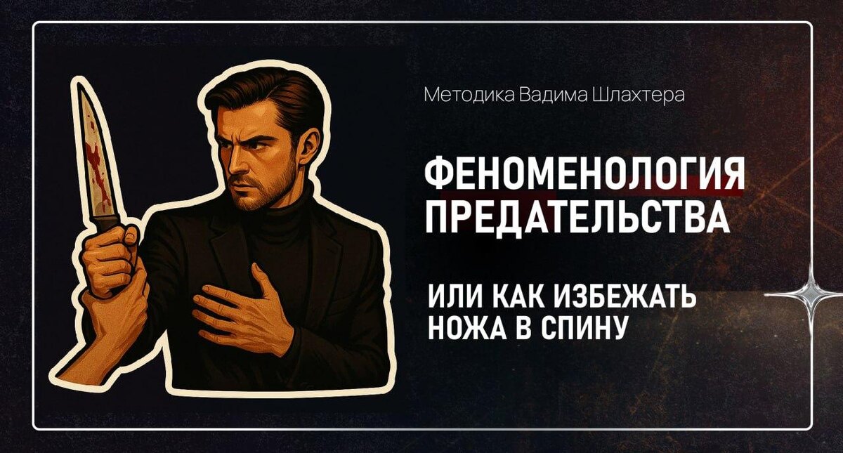 Предательство 😡 На этой неделе в «Коде Шлахтера» — попробуем разобрать само понятие и определить, что является предательством, а что нет. — Что такое настоящее предательство, а что просто трусость? — Почему предатель хуже врага? — Изменяешь с другой женщиной – кто ты на самом деле? — Где грань между личным выбором и ударом в спину? — Как почуять «запах предательства»? Если ты хочешь научиться видеть предателя до того, как он нанесёт удар — тебе сюда. 👉 Вступай в закрытый канал «Код Шлахтера» — там каждую неделю жёсткий разбор темы, упражнения, и личное общение со мной.
