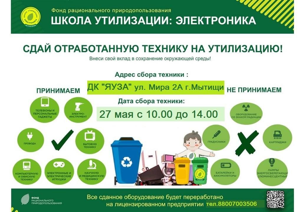 27 мая пройдёт акция «Школа утилизации: электроника» - сообщает администрация Мытищ