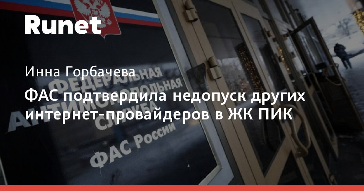 Федеральная антимонопольная служба (ФАС) России выявила, что в ряде жилых комплексов (ЖК) ПИК жители могут подключиться только к одному интернет-провайдеру — «Ловител», входящему в структуру застройщика, сообщает пресс-служба ведомства по итогам анализа данных от операторов связи и жилищных инспекций в 13 регионах России. «По результатам анализа полученной информации служба выявила ограничения в доступе и возможность подключения к одному интернет-провайдеру только в тех ЖК, где управляющая компания входит в группу лиц ПИК и услуги связи предоставляются «Ловител» — единственным оператором самого застройщика», — говорится в сообщении ФАС. Такие случаи зафиксированы в Москве, Московской области, Санкт-Петербурге и Ленинградской области. Ведомство направило запросы в «Ловител» и 10 управляющих компаний, чтобы получить объяснения по недопуску других операторов. Если нарушения подтвердятся, ФАС примет меры антимонопольного реагирования. Сейчас проверка продолжается. Кроме того, как выяснил T