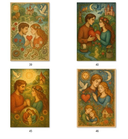 ✨Карты-подсказки для ваших отношений На днях мы обсуждали создание новой ресурсной колоды метафорических ассоциативных карт. Большинством голосов победила тема отношений. Создано авторских 48 карт. Вы только посмотрите, какая получилась красота! Каждая карта – многогранная история. Здесь можно найти ответы на вопросы: 🔸как складываются отношения? 🔸какие у них перспективы? 🔸какую роль на себя берёт каждый из партнёров? 🔸куда направлены взгляды мужчины и женщины и почему? 🔸какие на карте есть дополнительные символы и о чем они? 🔸насколько гармоничны отношения в паре? 🔸через какие трудности проходит/прошла пара? 🔸есть ли здесь скрытый конфликт? И многие-многие другие. Я решила применить сказкотерапевтический подход. В каждой карте «зашито» множество метафор, раскрывающих глубину отношений. Описывая картинку, можно придумать захватывающую сказку. Хотите испытать новую колоду? Формулируйте запрос и пишите в комментариях цифру от 1 до 48. Если нужно индивидуально проработать св