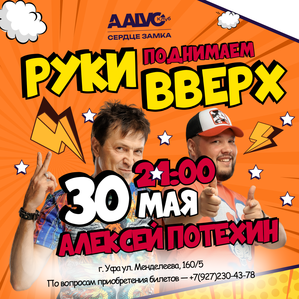 30 мая в 21:00 на сцене клуба AALVO Сердце замка выступит легендарный участник группы «Руки Вверх!» — Алексей Потехин. ⚡ Это будет мощный лайв с любимыми хитами, под которые выросло целое поколение:
