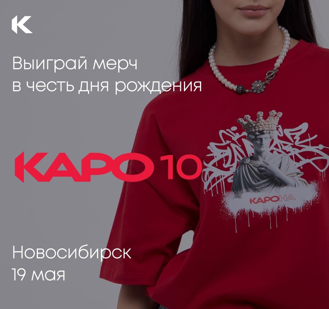 🥝🍅🍆🥑🥑 для НОВОСИБИРСКА Нашему кинотеатру КАРО 10 Галерея — 4 года! 4 года просмотра новинок, встреч с друзьями и нового уровня комфорта для жителей Новосибирска. Еще бы, кинотеатр входит в ТОП-5 по посещаемости в стране. Именно поэтому мы создали мерч для истинных киноманов, ведь наши зрители могут смело претендовать на звание самых крутых киноманов в городе😎 Ознакомиться с полным ассортиментом можно на kinowow.ru. В честь дня рождения кинотеатра разыгрываем крутые призы: 1️⃣Худи ЯВКИНО + билеты в кино на двоих 2️⃣Футболка ЯВКИНО + билеты в кино на двоих 3️⃣Билеты в кино на двоих Для участия в конкурсе: 1. Будь подписан на канал КАРО 2. Поставь 🔥 этой записи 3. Отправь видео/кружок с поздравлением кинотеатру в комментариях под этим постом! Рандомно выберем трех победителей и опубликуем итоги 2 июня под этим постом. Обращаем внимание, что конкурс проводится только среди жителей Новосибирска. В случае, если победитель из другого города мы переизбираем победителя. Вручение п