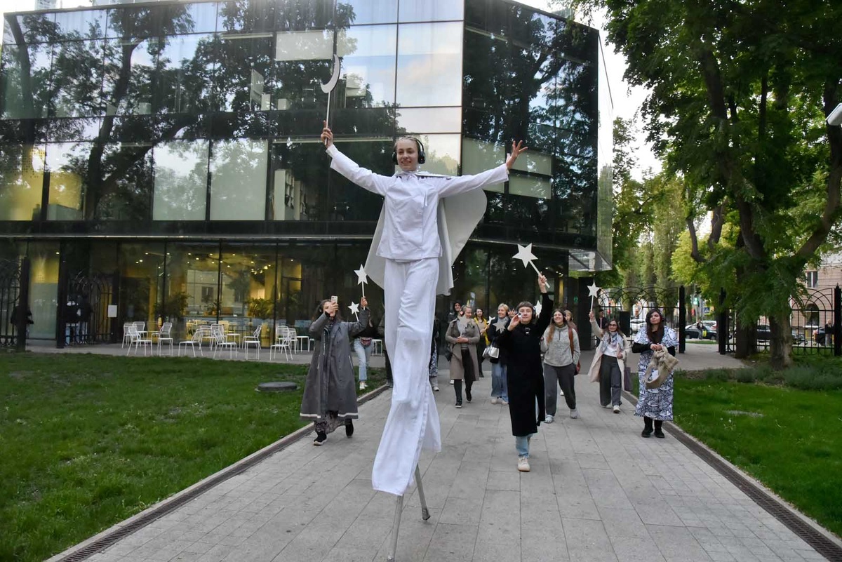 Если вы встретите на улицах Воронежа небольшую группу людей в наушниках, идущих вслед за черным вороном и девушкой в белом костюме на ходулях, – не удивляйтесь: они просто слушают город. Слушают его музыку, истории, стараются уловить его в точке пересечения прошлого, настоящего и даже будущего, сбывшегося и несбывшегося. Другими словами – это уличный спектакль Воронежского академического уличного театра «Воронеж не про Воронеж» (6+). Совершенно уникальное явление для нашего города, спектакль-прогулка, участником которой может стать каждый желающий. Бесплатные показы спектакля пройдут 24 и 30 мая и платный показ – 31 мая.
