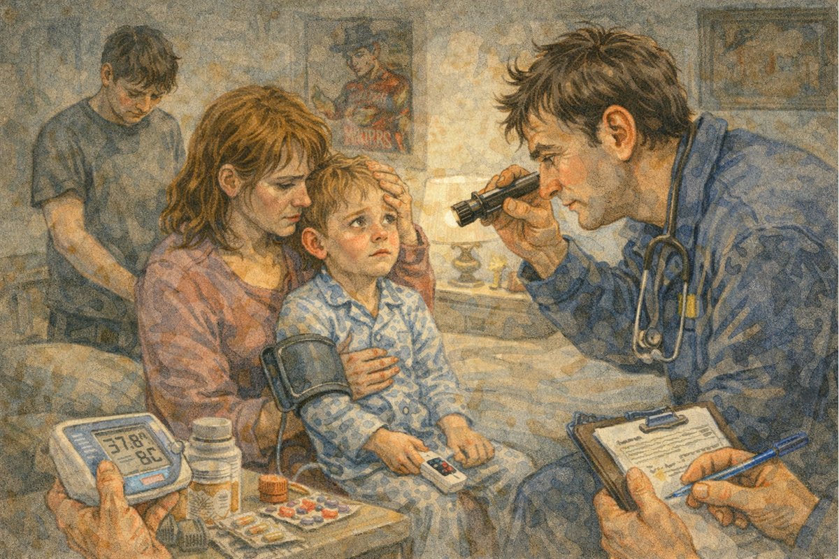 Рация прохрипела: - Пиши новый вызов. Ребенок семь лет, бредит, родителей не узнает, температура не измерялась. Вызывает мама, как понял? - Поняли, приняли, полетели. Говорящая коробочка тут же умолкла. - Ну что, все всё слышали? Вова, хорош прохлаждаться, погнали! Водитель, бросив беглый взгляд на адрес, резко дёрнул ручку коробки передач, включил громогласную сирену, да выехал на встречную полосу, вынуждая стоящих в глухой пробке водителей медленно и весьма неохотно расползаться в стороны. Повод, конечно, странноватый. Почти как пресловутое «плохо», когда понять толком ничего невозможно, но ехать при этом обязательно надо. Не прошло и 10 минут, как мы приехали. Лифт, к счастью, работал, а то этаж уж больно высокий. На пороге квартиры встречают родители. Внешне – напуганы, речь – сбивчива. Говорят быстро, перебивая друг друга: - У Вали был дневной сон. Все было хорошо, но он внезапно проснулся и стал истошно кричать. Ни меня, ни отца не узнал, в руки не дается, плачет так страшно и