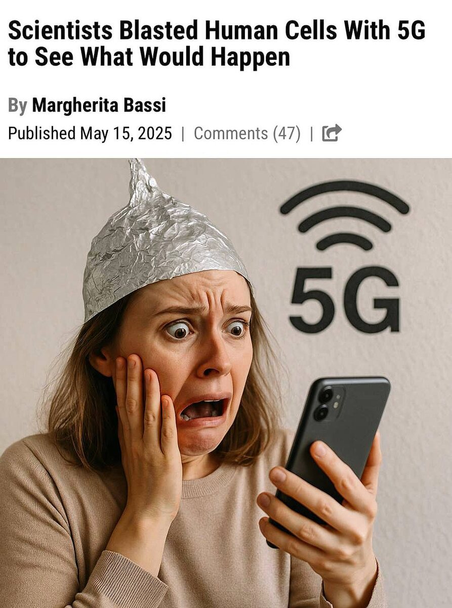 🙌 5G-излучение абсолютно не вредит здоровью Эксперименты показали, что после прямого двухдневного воздействия на клетки кожи человека никакого негативного эффекта не обнаружено. Даже при мощности, превышающей допустимые нормы в 10 раз, учёные не выявили повреждений ДНК или изменений в работе генов. Отличный повод оставить фольгированную шапочку в шкафу! 😊 ТехноКонтент