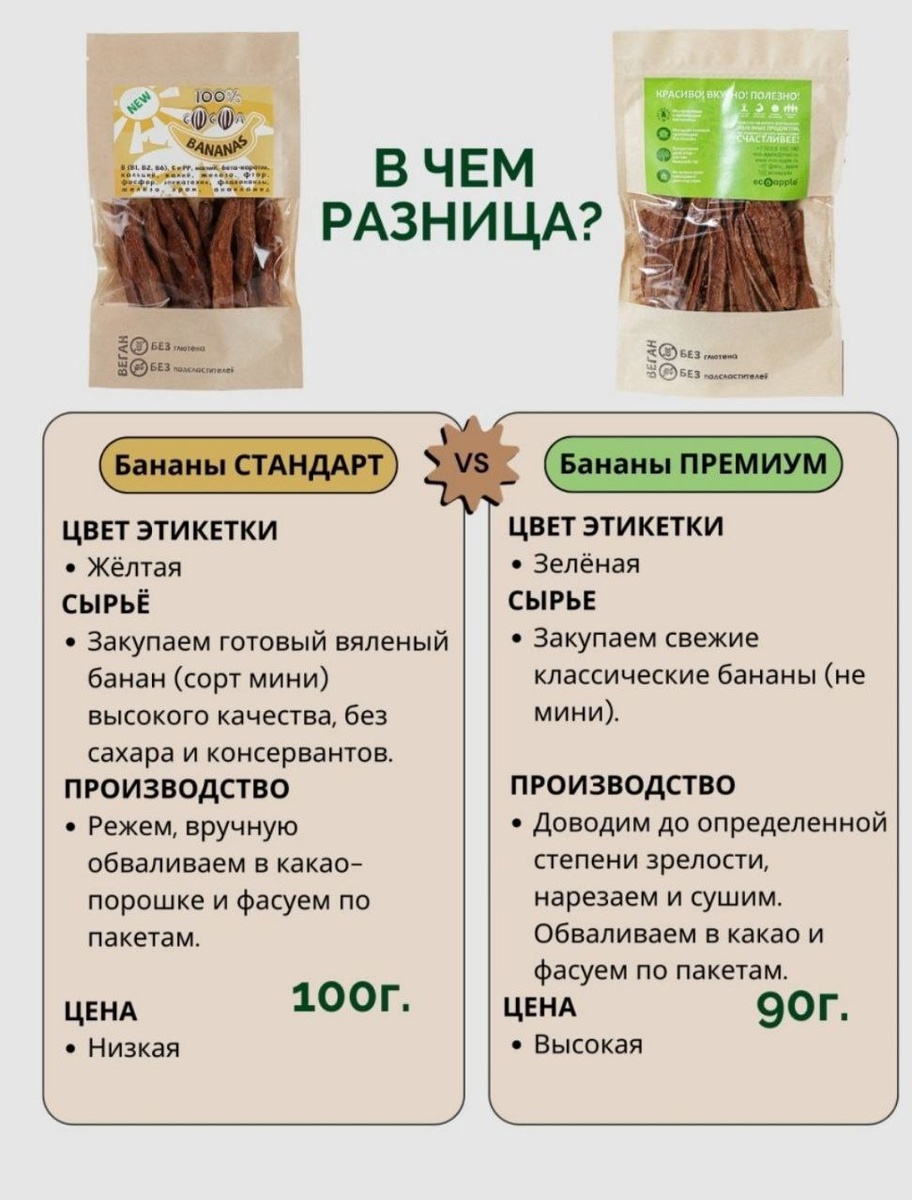 ВкусВилл снимет с полки, если в продукте обнаружены критические элементы. Да, это так. Могу вам уверенно сказать, что каждый продукт на полке ВВ периодически (без предупреждения поставщика) отправляется в лабораторию на анализ. Мы сотрудничаем с ними уже 4 года, опыт есть. Посмотрите видео в галерее, я вам сняла из нашего ЛК. Бананы в какао на что только не проверяли. При этом, мы предоставляли лабораторные результаты анализов в начале сотрудничества. В галерее так же для вас картинка, на ней мы наглядно показали , чем отличаются бананы ПРЕМИУМ от СТАНДАРТ ⤴️ Во ВкусВилл мы поставляем бананы стандарт, это результаты их проверки на видео. Я больше люблю наши бананы ПРЕМИУМ, они с нами уже 9й год и ни на что их не променяю☺️🔥 Но и у бананов СТАНДАРТ тоже находятся поклонники. Ведь на вкус и цвет... Ну и последний разочек напоминаю, что осталось несколько часов выгодной акции на наши хитовые бананы, вдруг кто не успел, запрыгивайте 😉🍫🍌