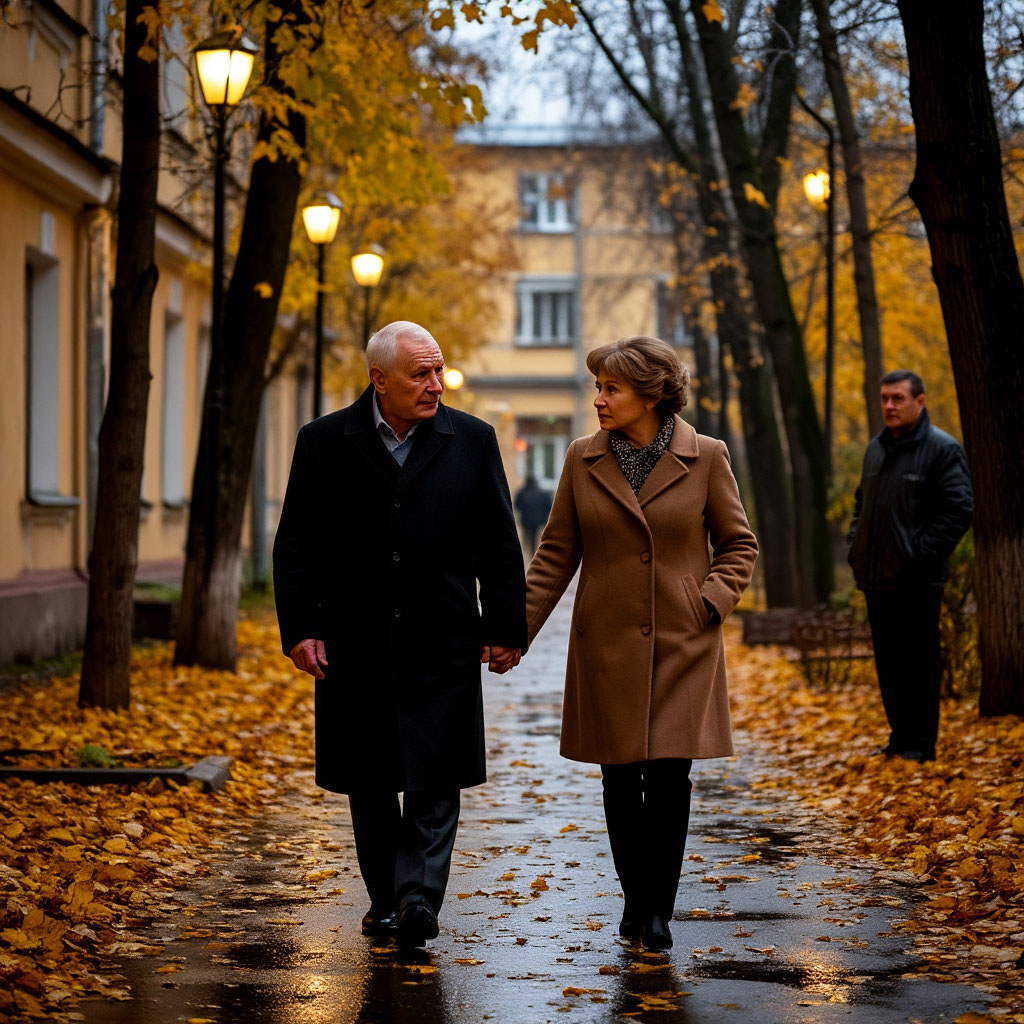 Я всегда поздно ужинаю, а тут что-то потянуло выйти на улицу. Какая-то тревога — неясная... Шёл по аллее вдоль нашего дома. Деревья — чёрные полосы на фоне огоньков, редкие прохожие… И вдруг, прямо возле детской площадки я увидел ВАЛЮ. Она стояла вполоборота, разговаривала — сначала показалось, что сама с собой. А потом увидел его. Серёжа. Мой друг, с которым мы на рыбалку, на картошку, да куда угодно… Я просто замер. Они не обнимались, не было ничего такого. Но в их молчании, в том, как Валя поправила ему шарф — столько было того, что не объяснить словами. Знаете, бывает — взгляд вдруг скользит по человеку, и ты сразу всё понимаешь? Вот… почти до слёз.