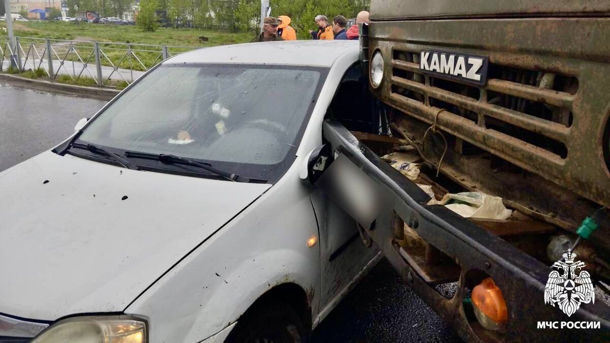 В Твери спасатели помогли выбраться женщине, которая была зажата в автомобиле после ДТП
