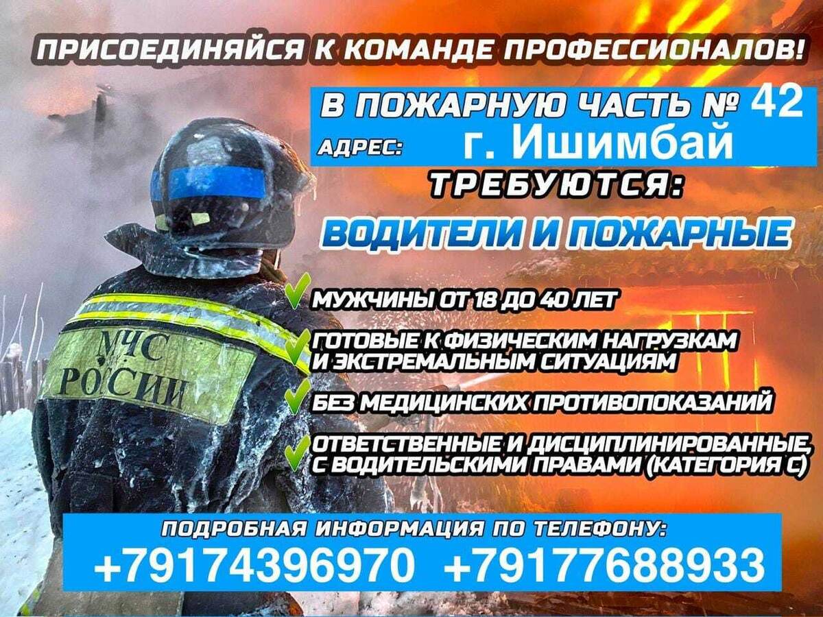 Пожарная часть №42 (г. Ишимбай) набирает водителей и пожарных!