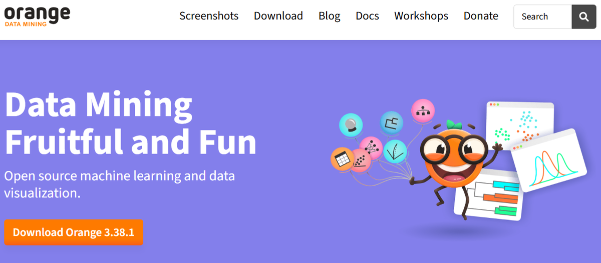 Orange Data Mining — визуальная среда для анализа данных, машинного обучения и визуализации, которая не требует от пользователя ни строчки кода. Разработанный в качестве проекта с открытым исходным кодом, Orange стал популярным инструментом среди всех тех, кому нужно разобраться в массивах данных, не погружаясь при этом в дебри программирования.