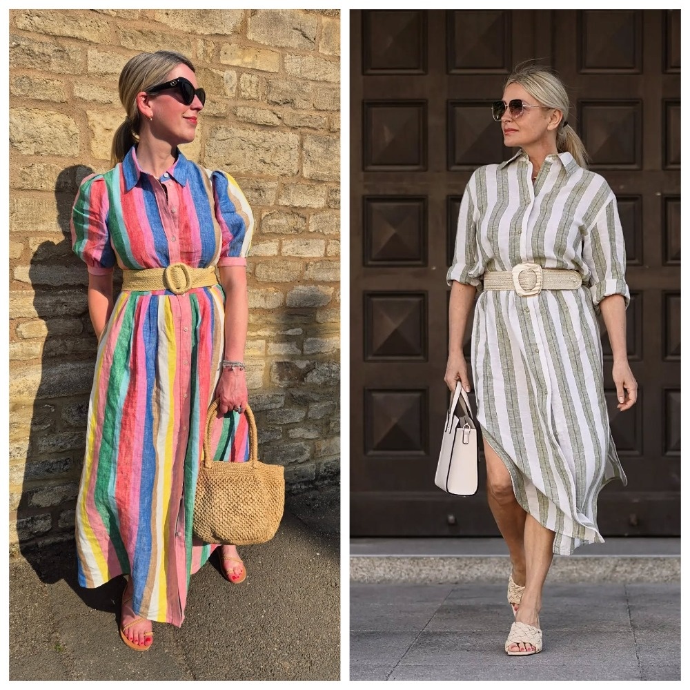 Вертикальная полоска вытягивает силуэт и хорошо смотрится в платья-рубашках, деловых костюмах и жилетах. Главное — выбирать ширину полоски в зависимости от назначения. Например, если идёте в офис, лучший вариант — тонкая и едва заметная линия, которая работает чуть деликатнее.