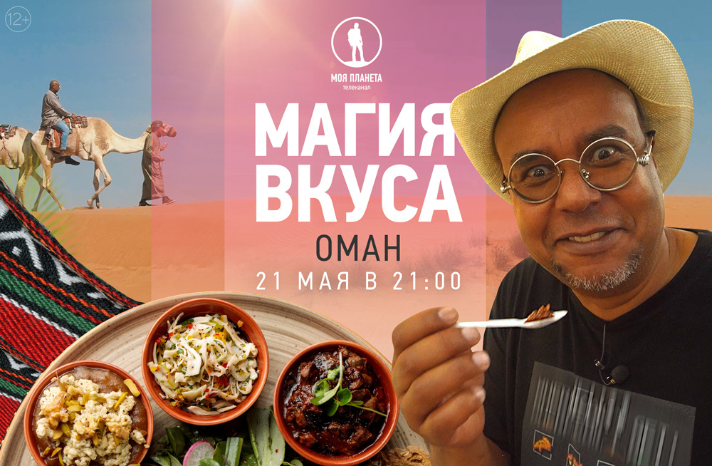 Главный гурман «Моей Планеты» Антон Зайцев впервые отправляется в Оман, жемчужину Арабского Востока, для съёмок кулинарного тревел-шоу «Магия вкуса». Султанат изобилует специями, пряностями, мясом и рыбой, а также разнообразными маринадами, которые делают кухню страны неповторимой и очень привлекательной для гастрономических путешествий. 21 мая в эфир выйдут сразу две серии проекта: «Магия вкуса. Оман. Деликатесы Востока» и «Магия вкуса. Оман. Восточная сказка». Антон Зайцев попробует здесь восточные блюда и запишет рецепты, которыми можно воспользоваться даже дома. К примеру, из местечка Рас-аль-Хадд, где рыбаки готовят свой свежий улов прямо на берегу, телеведущий привезёт не только рыбацкие байки Оманского залива, но и рецепт приготовления макбуса — рыбы с обилием овощей, рисом и специями. Кроме того, Антон разузнает, зачем запекать барашка в сумке из пальмовых листьев или же как превратить картошку в десерт. Журналист продолжит странствие по пескам Аравийского полуострова для того,