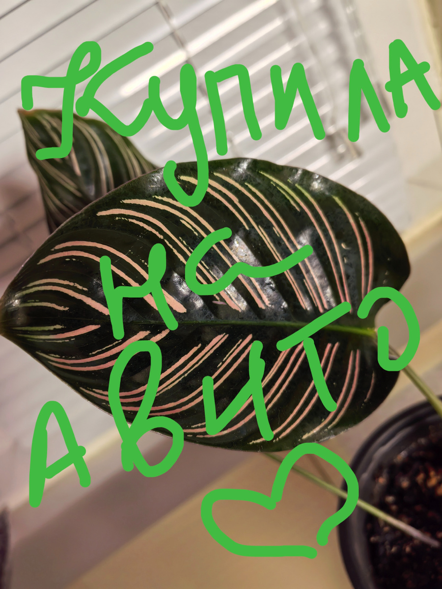 Привет всем подписчикам и гостям моего канала🌺 Хочу поделиться с вами своим приятным приобретением: Калатея Сендериана Моя новая любовь❤️ Очень мне понравился окрас листьев. Насыщенно-зеленый цвет самого листа с бледно-розовыми прожилками Складывается впечатление, что кистью 🖌️ нарисовано Решила приобрести себе в дом такое растение для разнообразия.У меня не много домашних цветов в основном это фиалки, которые я сама размножаю листовыми черенками или детками Я не только продаю на Авито , но и покупаю у других продавцов нужные мне товары. Начала искать на сайте объявление в своём городе, но предложений не было Печально😩 Спустя неделю я наткнулась в рекомендациях на объявление о продаже калатеи в соседнем городе. Быстро написала продавцу, и, к счастью, милая девушка быстро ответила на смс( таких продавцов считаю заинтересованных в продажах) Мы быстро договорились о встрече. На мое счастье девушка была дома, что вдохновило меня забрать растение сиюминутно🪴 Всё прошло прекрасн