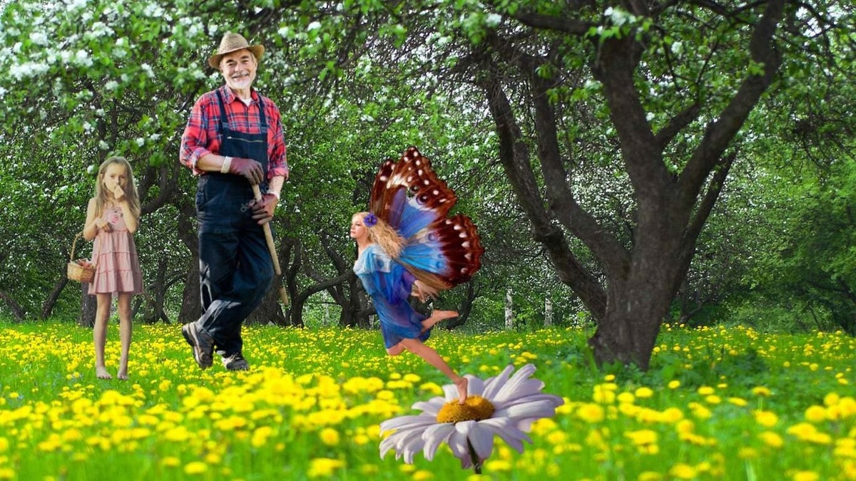 Алиса с дедушкой поливали сад. Ароматно пахло яблоками и грушами. На спелых гроздьях винограда играли солнечные блики.Ах, какое наслаждение ходить босиком по мягкой траве, расстилающейся под деревьями. На вишне, прыгая с ветки на ветку, чирикал растрёпанный воробей. На большом листке тыквы сидела нежно-золотистая бабочка. (АУДИО СКАЗКИ "Встреча с феей" здесь https://music.yandex.ru/playlists/0f7e71aa-acb2-5496-96d0-3a677cae9582?edit=title ) - Смотри, дедушка, какая чудесная бабочка! – сказала девочка.