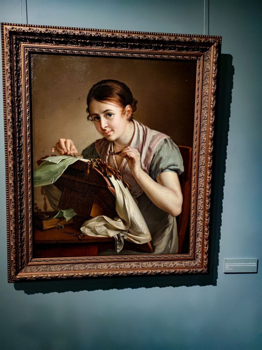 В этом году моя Ночь музеев прошла в музее Тропинина на Полянке. Конечно, интересная и непростая судьба была у Василия Андреевича Тропинина. Художник родился крепостным и только в 48 лет уже будучи всемирно известным художником он получил вольную. А вот его жена и сын стали свободными на пять лет позже. Так не хотел граф Морков отпускать талантливого художника. Не могли повлиять на графа ни общественное мнение, ни просьбы знатных людей, ни даже предложение простить огромный карточный долг в обмен на вольную для художника. Тропинин не был в обиде на графа и всегда говорил, что только благодаря тому, что граф отправил его на учебу в Петербург он достиг такого совершенства. Правда учеба та была не живописи, а кондитерскому делу. Ну что же, Василий Тропинин не перечил графу. Тропинину в Петербурге повезло. Тогда Академия живописи искала таланты среди простых людей и проводила бесплатные уроки. Один из родственников барина, видя увлечения крепостного, уговорил кузена отправить Тропи