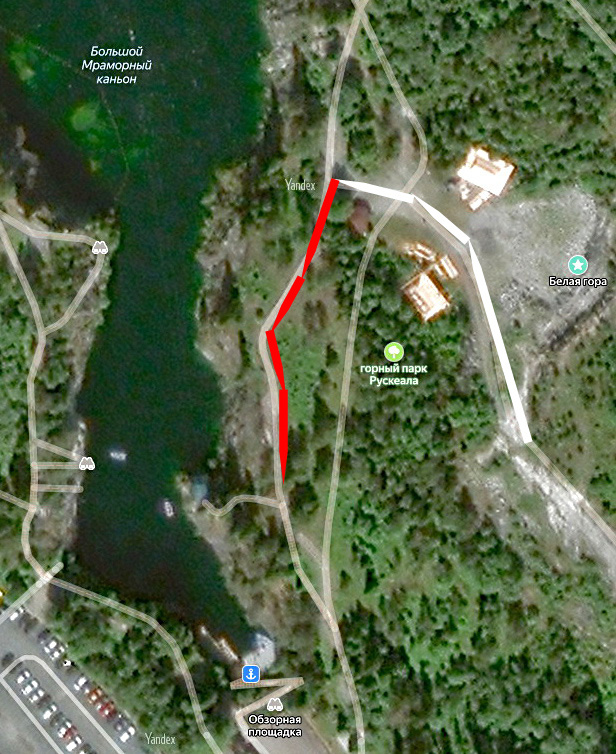 После небольшого отклонения от основного маршрута на Белую гору в предыдущей статье, возвращаемся на туристическую «тропу» к кромке карьера. В этой части виртуальной экскурсии вокруг Мраморного каньона, двигаясь в южном направлении, продолжим осматривать с востока западный борт карьера. Взгляд на запад: эта скала с обзорными площадками находится напротив Белой горы. Панорама западного борта к северу от скалы и Камня пандемии с той же точки. Это же место в 2014 году: Камень пандемии пока ещё где-то наверху, обзорных площадок тоже нет. Слева от скалы – крутая мраморная стена, жёсткие природные условия – не преграда для растительности Карелии. На снимке – одно из предлагаемых любителям острых ощущений развлечений, аттракцион «Троллей»: 400-метровый «полёт» над акваторией карьера. Более спокойное предложение для туристов – «круиз» на пароме по каньону и гротам в сопровождении почётного эскорта. Красивый вид на карьер с юго-востока, видны оба борта – слева западный, справа – восточный. В пр