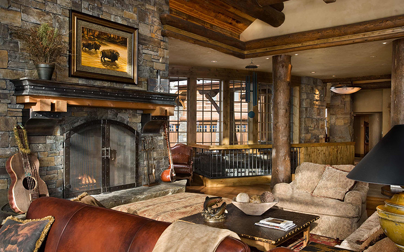 Что касается материалов, то тут основополагающие это: дерево — душа интерьера, камень — атмосферность, металл — благородные акценты, и текстиль — мягкие ноты. Дерево вообще задает настроение стиля, будь то полы, стены, потолки или мебель. Камень же это про полы, столешницы, камины, порталы и даже акцентные стены. Металл играет в нюансах: кованые элементы мебели, светильники, фурнитура. Текстиль все делает более теплым и легким: льняные шторы, шерстяные пледы, кожаные диваны.