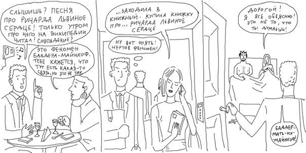 Поговорим про феномен Баадера-Майнхоф. Вы только что прочитали интересную статью о редком виде бабочек. На следующий день вы видите изображение этой бабочки на кружке коллеги. Вечером, случайно переключая каналы, вы натыкаетесь на документальный фильм о бабочках. А через неделю, гуляя по парку, вы замечаете стайку тех самых бабочек, о которых читали! Мистика? Судьба? Нет, скорее всего, вы столкнулись с феноменом Баадера-Майнхофа (Baader-Meinhof Phenomenon), также известным как «иллюзия частоты». Этот феномен описывает когнитивное искажение, при котором после того, как вы узнали что-то новое, вам кажется, что вы видите это повсюду. Внезапно этот новый термин, бренд или идея начинают встречаться вам чаще, чем когда-либо прежде. Кажется, будто мир сговорился, чтобы напоминать вам об этом. Название «Баадер-Майнхоф» появилось случайно. В 1994 году один из читателей онлайн-форума рассказал, что после того, как он услышал о немецкой леворадикальной организации «Фракция Красной армии» (Baader-