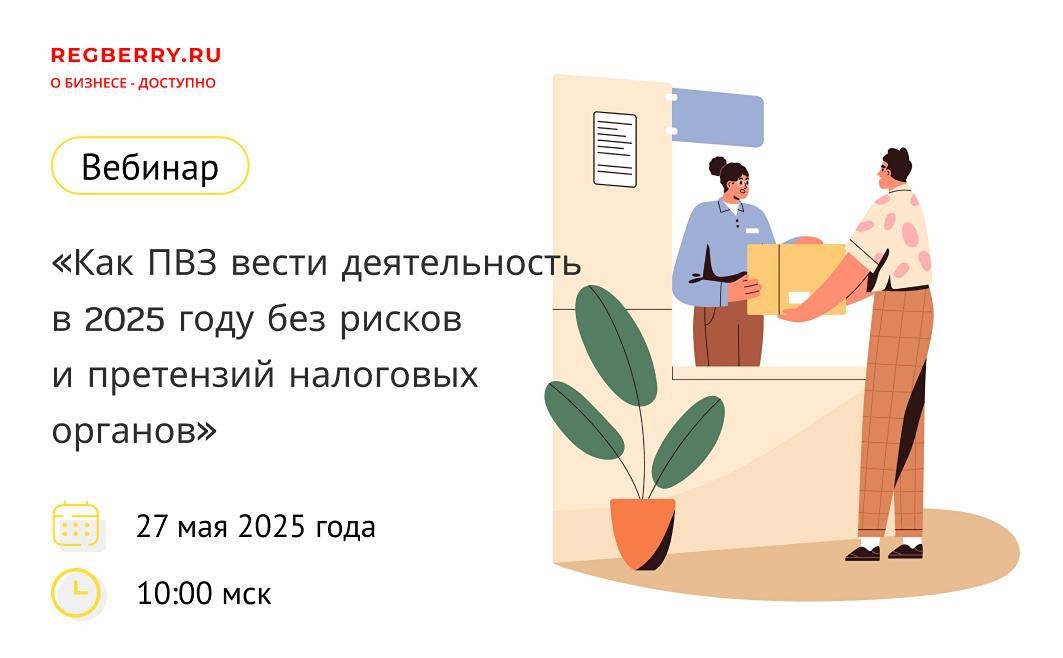 🔥 Как ПВЗ вести деятельность в 2025 году без рисков и претензий налоговых органов Владельцы пунктов выдачи заказов сталкиваются с новыми вызовами: 🔹 Налоговые проверки стали жестче. 🔹 Сотрудники требуют гибких условий, но недостачи и штрафы остаются за бизнесом. 🔹 Штрафы от маркетплейсов и претензии контролирующих органов съедают прибыль. 27 мая в 10:00 (мск) пройдет вебинар, где разберём: ✅ Методы налогового контроля в отношении ПВЗ. ✅ Критерии оценки налоговыми органами деятельности предпринимателя и ПВЗ для налоговых проверок. ✅ Профилактика налоговых претензий: ✅ Трудовые отношения в ПВЗ: законные формы оформления сотрудников. ✅ Кадровый документооборот для микро- и малого бизнеса: обязательные требования и частые ошибки. ✅ Материальная ответственность персонала: порядок возмещения ущерба и правовые нюансы. ✅ Алгоритм действий при вызове в налоговую: как подготовиться к проверке. ✅ Ответы на ваши вопросы от экспертов. 📌 Участие бесплатное! 🔗 Регистрация по ссылке