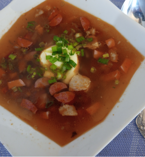 Сегодня хочу поделиться с вами рецептом нашего горячо-любимого супа. Мы живём вдвоём с мужем, но солянку я варю в 4-х литровой кастрюле. Муж готов есть её на завтрак, обед и ужин.. И это почти правда. Две большие тарелки сразу, как только сварится и вполне вероятно и на ужин этого дня и вот уже полкастрюли как не бывало. 😁😁😁 Если поискать в интернете историю этого супчика, то можно найти несколько интересных вариантов, вот лишь некоторые из них : Первые письменные упоминания о солянке (селянке) относятся к XVIII веку, но тогда это было не суп, а горячее блюдо из капусты, огурцов, мяса, птицы, рыбы, грибов или других продуктов. Суповая версия солянки появилась в 1830-х годах... Во второй половине XIX века солянка приобрела современный вид. Появились фантазийные версии блюда — с осетриной, каперсами, лимоном, копчёностями. Слово " солянка" это измененное название блюда " селянка", то есть сельское, деревенское кушанье.... Есть много других интер