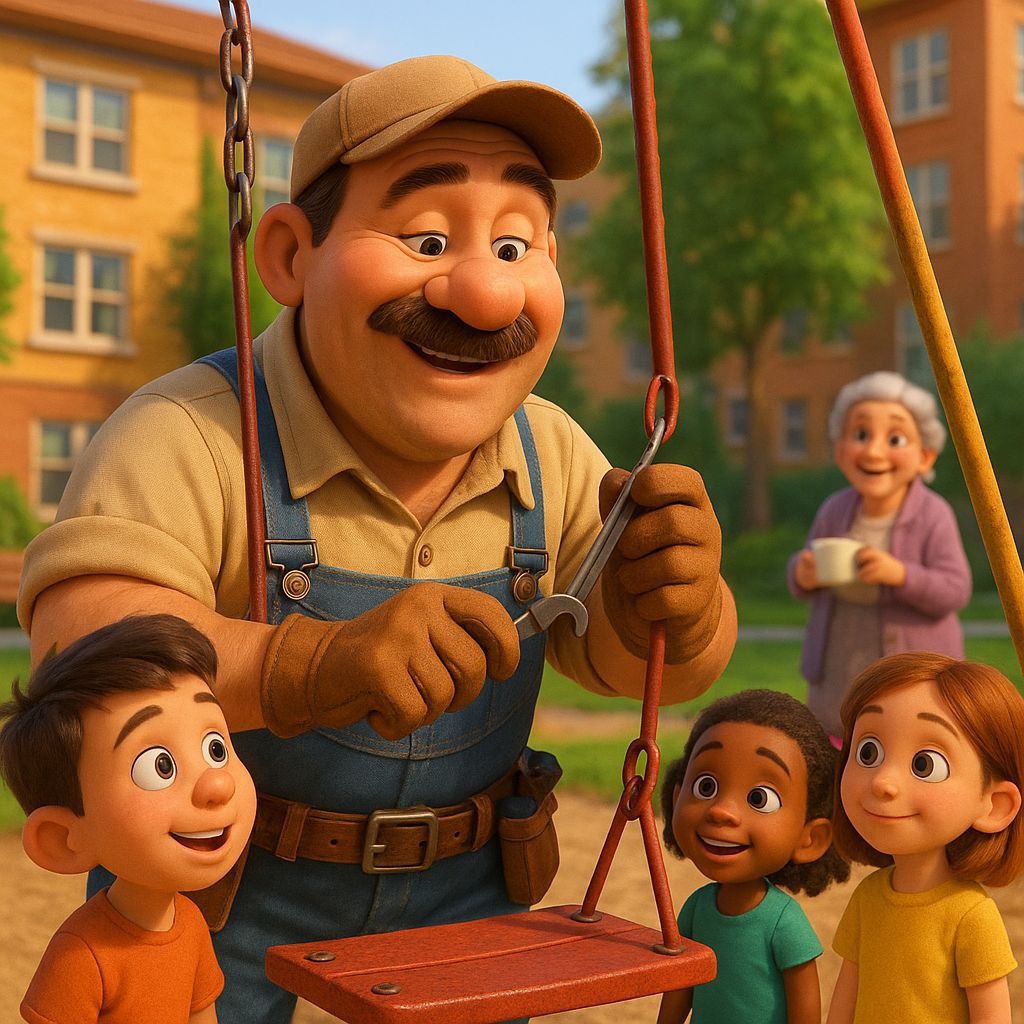 Сказка «Золотые руки дяди Пети» В одном большом, но уютном районе жил человек по имени дядя Петя. Он не был богат, не носил дорогих костюмов и не стремился к славе, но все, кто его знал, запоминали его навсегда. Дядя Петя работал простым слесарем: чинил краны, двери, батареи, детские качели — всё, что ломалось и мешало людям жить. И делал он это не ради денег, а потому что считал: «Если что-то сломалось — значит, кому-то плохо. А раз мне не всё равно — надо помочь». Дети во дворе звали его «дядя Золотые Руки», потому что он мог починить сломанную машинку или куклу так, что та становилась как новая. Бабушки и дедушки уважали его за терпение и доброту, а родители — за то, что их дети росли рядом с таким человеком. Каждое утро дядя Петя выходил из дома с потрёпанным, но аккуратно починенным ящиком с инструментами. Шёл неторопливо, словно капитан, осматривающий свой корабль, а в глазах у него светилась тихая уверенность: он знал, что его труд нужен. — «Дядь Петя, у нас качели скрипят!