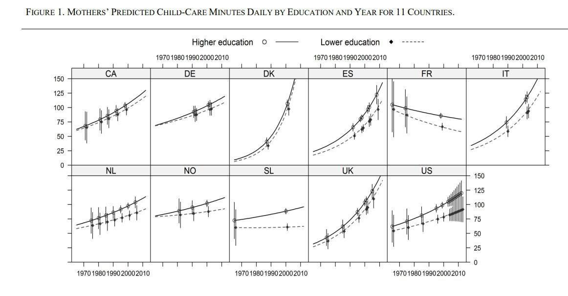 Там уже в 1965-м матери тратили на детей столько времени (100 минут), сколько в других странах – только спустя 30-40 лет
