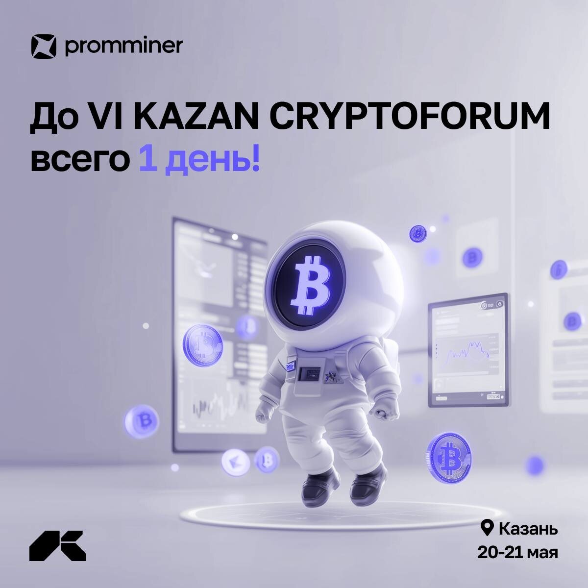 ⚡️ Уже завтра в Казани стартует VI KAZAN CRYPTOFORUM Форум станет уникальной площадкой для обсуждения актуальных трендов в криптоиндустрии, перспектив ее развития и эффективных механизмов регулирования отрасли. 💎 Компания Promminer является генеральным спонсором мероприятия. По промокоду PROMMINER для наших клиентов действует скидка 10% на покупку билетов. Увидимся с вами завтра! До встречи в Казани 🔥 🤍 Promminer: Сайт | ВК | YouTube | Дзен