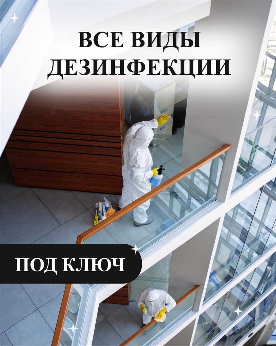 ✨ Дезинфекция под ключ от нашей клининговой компании! ✨ 🤝 Мы предлагаем полный спектр услуг по дезинфекции для вашего дома и офиса. Здоровье и безопасность наших клиентов — наш приоритет! 🧼 Наши услуги: - Обработка квартиры после несчастного случая, смерти (проводится с целью устранить трупный яд и продукты разложения) - Обработка квартир, содержащихся в антисанитарных условиях - Дезинфекция квартир после пожара - удаление запаха гари - Профилактическая дезинфекция Проводится регулярно, с целью предотвращения распространения заболеваний. Подходит для коммерческих организаций - Очаговая дезинфекция Проводят в случае обнаружения очага заражения, с целью уничтожения выявленных инфекций и их возбудителей - Обработка воздуха и помещений (озонирование / аэрозольная дезинфекция) 💪 Мы используем только проверенные и эффективные средства, которые безопасны для людей и животных. А также имеем лицензию на проведение дезинфекции, дезинфекции и дератизации, и дипломированных специалисто
