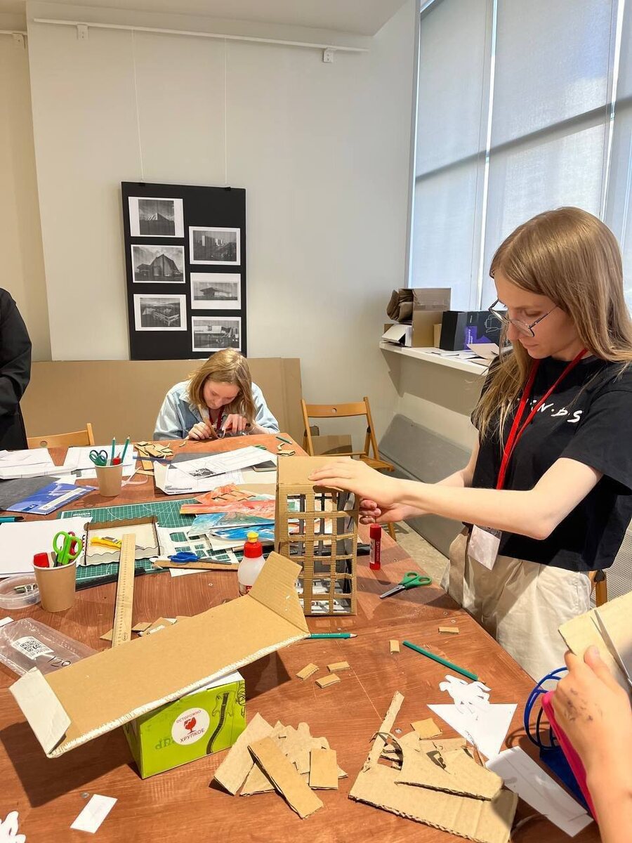 ✨Город, построенный из вдохновения: как прошла Ночь музеев в Тольятти ✨ Студенты 3 курса Высшей школы дизайна и искусства приняли участие в уникальном проекте: вместе с детьми они создавали архитектурные объекты из картона, воплощая разные стили Тольятти — от исторических памятников до современных многоэтажек. «Мы строили свой картонный Тольятти — кто-то точно воспроизводил реальные здания, а кто-то давал волю фантазии и создавал дома в своем собственном стиле. Это было настоящее путешествие в архитектуру и дизайн через творчество!» — делятся впечатлениями студенты. «Участие в «Ночи музеев» стало для наших студентов не только творческим экспериментом, но и настоящей профориентационной практикой. Они примерили на себя роль наставников, попробовали работать с реальной аудиторией и увидели, как их знания и творческий опыт могут вдохновлять и вовлекать даже самых маленьких участников, - отмечает проректор Евгения Кузнецова. - Такие проекты помогают понять, что профессия дизайнера — это