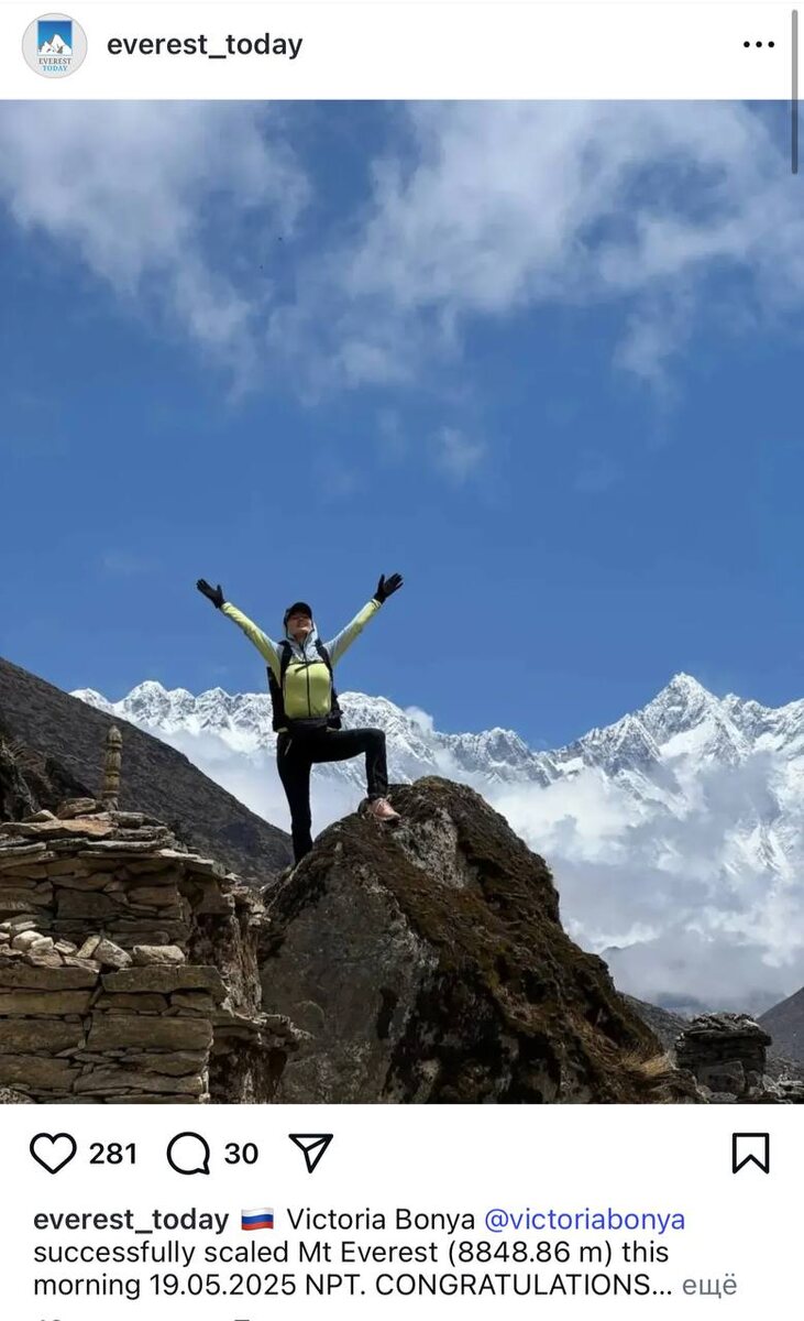 Виктория Боня покорила Эверест! Тяжело в это поверить, но фото сделано на высоте 8 849 метров 👏 Ждем, когда она сама выйдет на связь