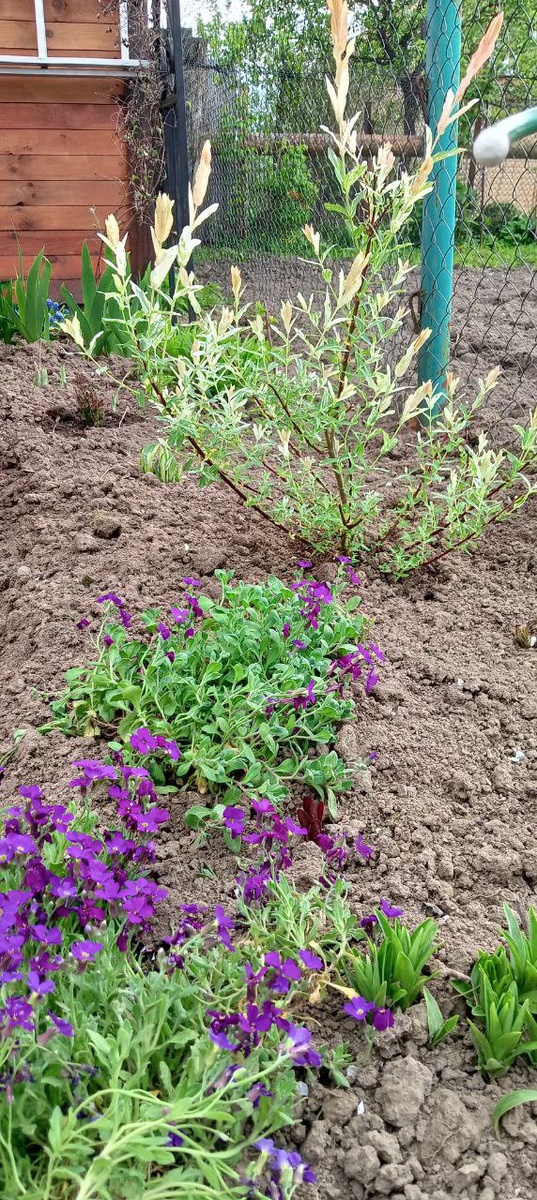 Вчера высадила Иву ХАКУРО НИШИКЕ купленную недавно в питомнике. У меня погиб рододендрон который рос лет 15, освободилось место и я проделав небольшую рокировку в цветнике посадила иву на постоянное место. Буду формировать ее шариком, место ограничено поэтому все растения БЕЗ ИСКЛЮЧЕНИЯ Я стригу несколько раз за сезон.