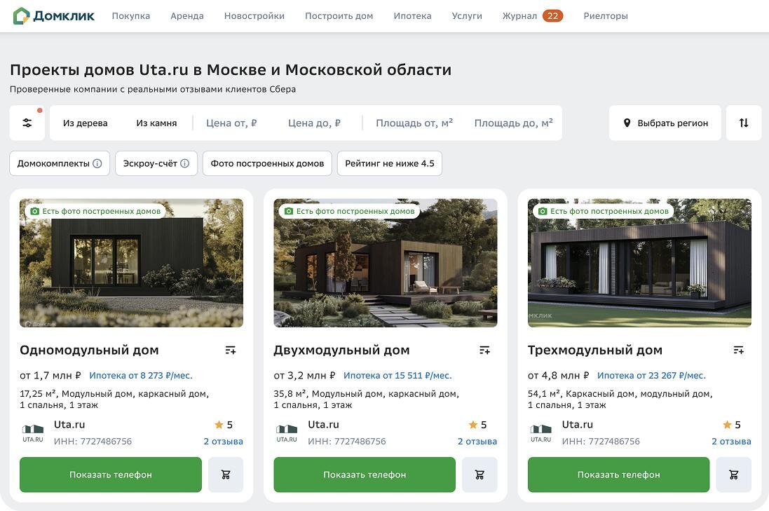 🏡 Теперь модульный дом — ещё доступнее. Ипотека от 8 273 ₽ в месяц! Сбербанк отменил комиссии с подрядчиков — это значит, что покупателям стало выгоднее брать дома в ипотеку. Больше никакой наценки: ставка ниже, а ежемесячный платёж — дешевле, чем снимать квартиру в Москве или Подмосковье. На ДомКлик представлены многие проекты домов Uta.ru. Можно: ✔️ сравнить планировки и цены, ✔️ узнать точный ежемесячный платёж в ипотеку, ✔️ подать заявку и получить одобрение онлайн. UTA — аккредитованный подрядчик Сбербанка. Мы строим модульные дома под ключ в Москве и МО, с прозрачной стоимостью и понятными сроками. 🌐 uta.ru 📲 +7 (495) 979 11 99