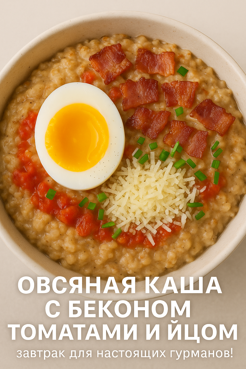 🥓🍅 Овсяная каша с беконом, томатами и яйцом — завтрак для настоящих гурманов!