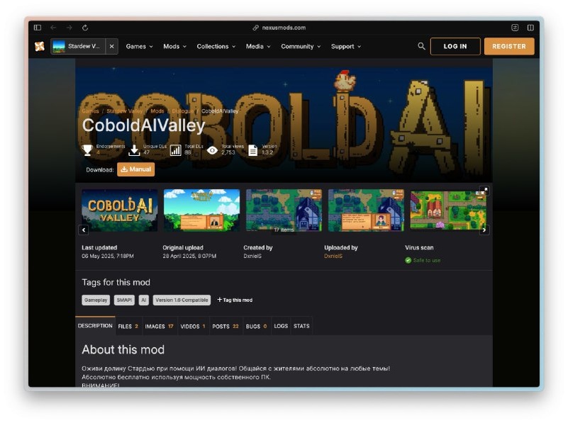 🌾 Stardew Valley теперь живет по-новому! Ваша деревня обрела уникальных жителей с памятью и характером. 🤖 Новый мод добавляет NPC с искусственным интеллектом. Они помнят ваши разговоры и взаимодействия, поэтому каждый диалог становится особенным и реалистичным. 🗣️ Обсуждайте погоду, жизнь, секреты деревни — разговоры с персонажами теперь живые и многогранные. К тому же поддержка русского языка делает общение комфортным. 🎮 Забудьте застарелые однообразные реплики — ваши отношения с жителями развиваются и меняются, как в настоящей истории. 🌟 Если хотите глубже погрузиться в мир Stardew Valley, этот мод откроет новые горизонты и сделает игру еще ярче. 📥 Обновляйте игру и готовьтесь к незабываемым беседам!